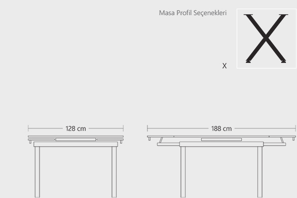 [Masa Ölçüleri] = Uzunluk: 128 cm (kapalı) - 188 cm (açık) / Genişlik: 78 cm / Yükseklik: 76 cm